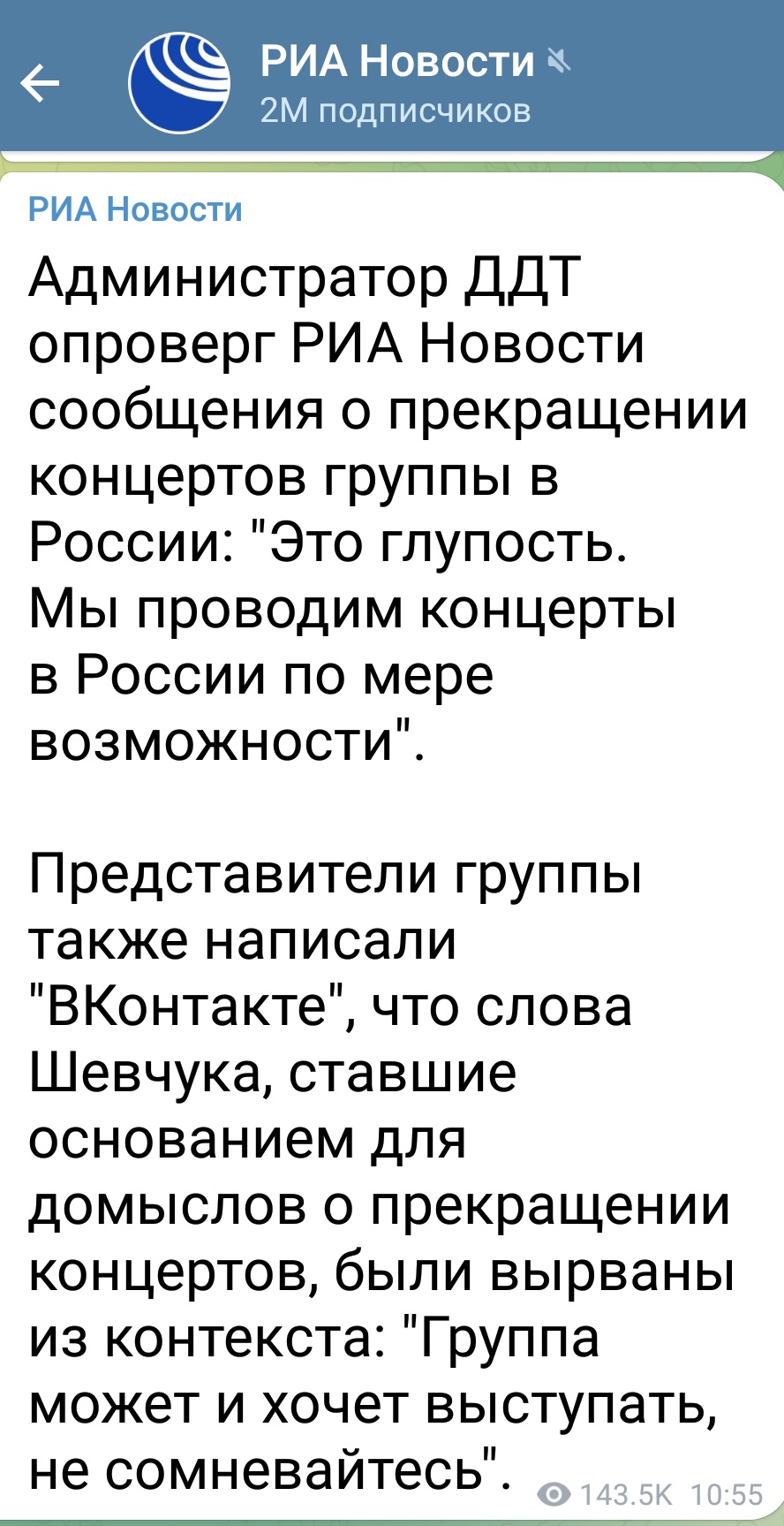 мне лично после этого смотреть дальше вообще не хочется. в огороде бузина, а в Киеве Зелибоба. в каком месте не росла экономика? в каком, покажите, месте? про навальнят все уже всё тоже поняли, возможно кроме подростков, но мы все были подростками и много чего не понимали. я как был против СО - так и остаюсь против, несмотря на то, что уже много поразительных (для меня) фактов выплыло о нациках и, которых я не знал (фактов не знал, а не нациков). тем не менее слушать бред нашей либерасни - это себя не уважать. п.с. в связи с недавней болезнью и кончиной Жириновского в Сети много вспомнили роликов, я уже писал что в каком-то смысле открыл для себя другого Жириновского. и мне запомнилась пара роликов, которые я посмотрел как минимум месяц назад, где он говорит, что Украина как государство перестанет существовать: восточная часть отойдёт России, западная полякам и венграм. тогда я как-то не придал этому значения. а сейчас это начинает происходить на наших глазах: Херсон и Запорожье прямым ходом идут в Россию. ДНР и ЛНР, скорее всего, тоже. польский президент говорит о том, что граница Польши и Украины не нужна, Львовский мэр - что у них недостаточен накал русофобии. мда. всегда считал Жирика клоуном. теперь настала пора задуматься. то, что он говорил, ты видишь в реальности... видимо, Украина как государство перестанет существовать вообще. -------------------- Разница других исполнителей, которые пытались перепеть эту песню, в том, что они поют как будто идут на войну, а Цой - будто вернулся оттуда.