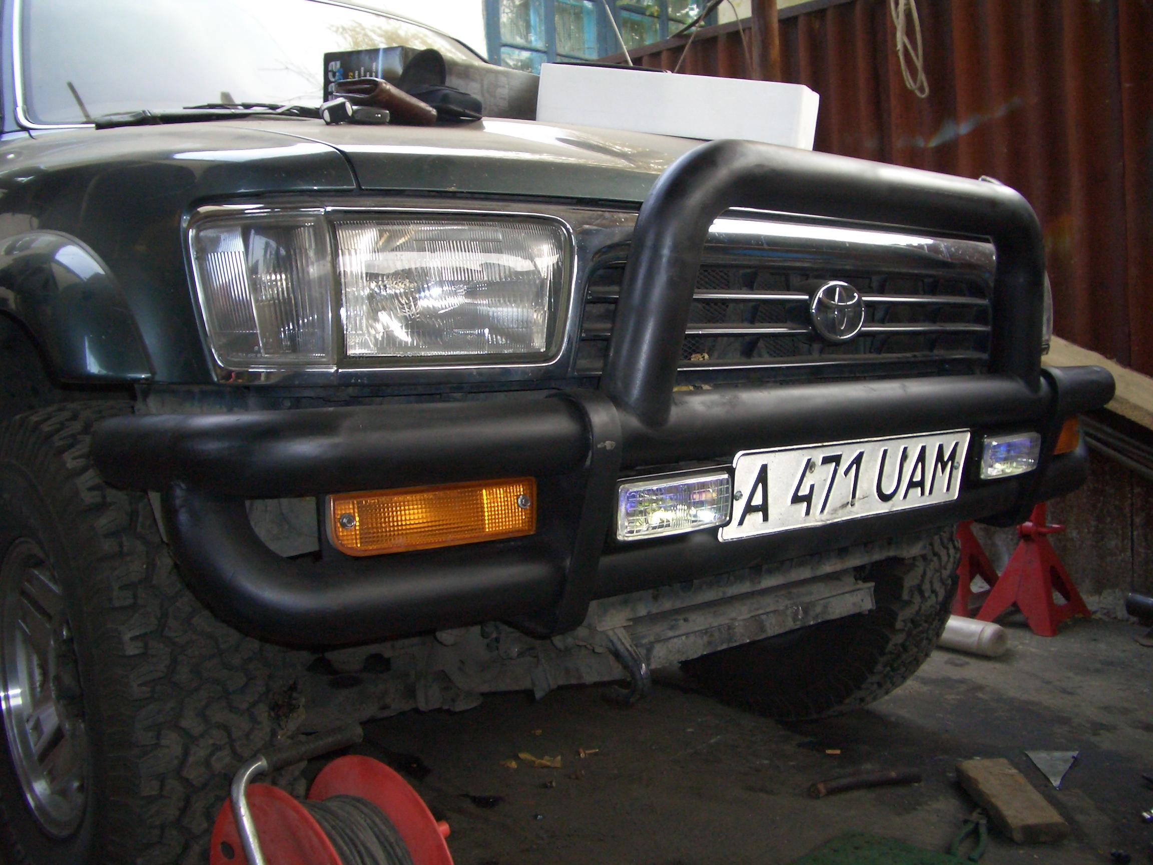 В принципе очень даже не плохо получилось, я остался доволен. Когда его изготавливали, постарались учесть тот факт, что при жестком бампере закрепленном на раме при значительном столкновении обязательно пострадает рама. Недавно произошел незапланированный "тест" бампера))) Придется немного рихтануть и покрасить, а вот водителю Короны придется порванные двери на помойку выкидывать(. -------------------- Главное в экстремальном отдыхе-вовремя заметить, когда заканчивается экстрим и начинается полная Ж@па!