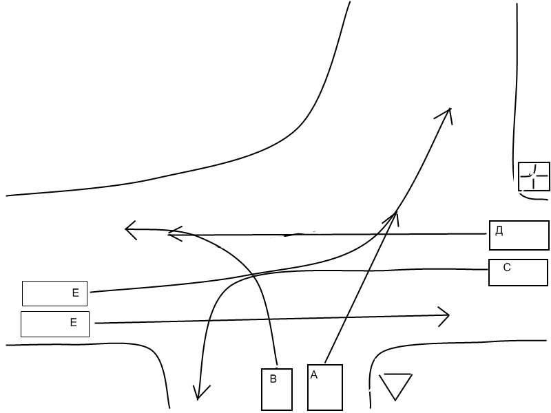 оо..даа...а если машинка А уже выехала из поворота..она должна д и с пропускать или они её?
