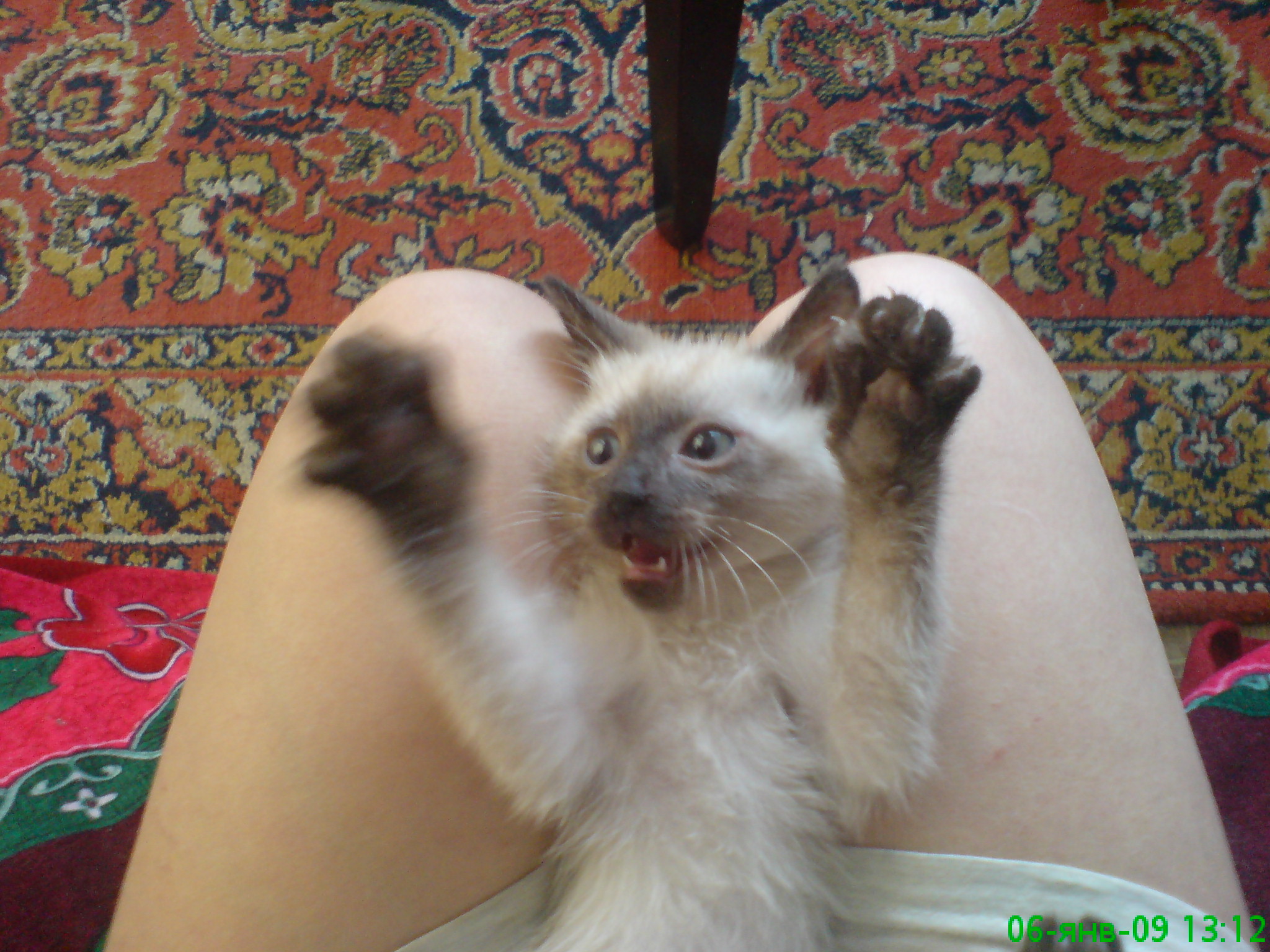 А курилов....можно поехать туда и просто так в лесу себе поймать? Теоретически можно. Но практически..? Проще поехать туда и у кого-нибудь просто взять котёночка. Там дома простых кошек местное население не держит, только курилы. По крайней мере так раньше было в конце прошлого века, когда я там был. Вот там я и познакомился с этими потрясающими, без преувеличения, животными. Хотя энтузиасты породы отлавливали в лесу котят, бывало. Но это сопряжено с некоторыми трудностями Тут вот ещё вспомнилось. Когда брал свою кису, хозяйка рассказывала, что к ним на клумбу повадился ходить соседский кот погадить. У её кошки тогда как раз появились котята. И, соответственно, кошка была не в восторге от подобных посещений,усмотрев в этом угрозу своему потомству. Она выследила кота, поймала его за шиворот, сила, рост и вес позволили это сделать. Для начала утихомирила его коготками, а потом отволокла к тазику с водой и несколько раз раз его там почти по человечески притопила. Окунёт голову туда и ждёт когда кошак трепыхаться перестанет, потом вытащит, даст отдышаться и снова в тазик. И так раз несколько. Хозяйка очень жалела, что не успела за камерой сбегать. Ну а кот после этого больше вобще не появлялся. Вот такие "царапки" в тех милых и пушистых лапках. А на задних ногах они поболе и не втягиваются. Сообщение отредактировал PUPS_SV - 9.5.2009, 14:47 -------------------- С уважением Дмитрий. +79148504749