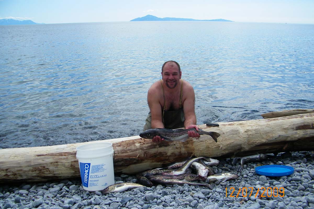 Сегодня рыбачили в бухте Тихая. Минтай пёр как потерпевший. Попадалась и треска, и камбала и даже ёрш. Пришлось выходить на берег и чистить рыбу, т.к. все ёмкости в лодке забили минут за 20. Вообщем свой профессиональный праздник отметил как положено - на рыбалке. Денёк был обалденный, вода тёплая, эхолот показывал +15 градусов. Порывался искупаться, но остановило исчезновение солнца за облаками. В данный момент готовлюсь поедать котлетки из трески, с пылу, с жару. Поздравляю всех рыбаков с праздником!!!