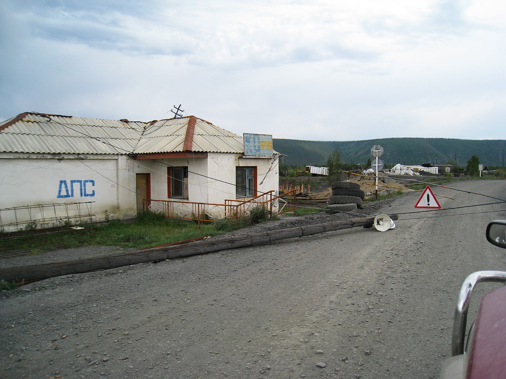 День 4й. Кубюме – Теплый ключ. Проснулись достаточно рано – около 9 утра. Убрали палатку, позавтракали, начали готовить машины: Кстати, все это время – автомобили показывали себя достойно.. Поломок, кроме упавшего на пол-шестого датчика уровня топлива на сафаре – не было.. иногда правда при тряске вела себя подозрительно стрелка тахометра у сафаря же – норовила упасть тудаже.. но пока тенденция эта не развилась. Пока собирались – супруга сделала несколько фото: Отдельно надо сказать о пятом члене команды – собаке по имени Дуся.. Собачка стойко переносила лишения и тяготы путешествия.. но на 4й день сделала вид, что никуда она отсюда не поедет… на руках – затащили в машину, завелись и поехали. Вообще, 4й день обещал быть интересным – мы должны были пройти такие места, как заячья петля, Черный и желтый прижимы, и спуститься с гор в долину реки Алдан. Поехали в общем.. довольно скоро дорога сильно сузилась и в случае чего разъезжаться с какимнить большегрузом было бы сложно.. проехали километров 40 - опять же со скоростью не более сорока км в час подъехали к границам Томпонского района.. (да-да, именно такого) Чуть позже подъехали к метеостанции Восточная. Надо сказать – что в этом месте нет мостов через ручьи пересекающие дорогу… а дорога одна… ручьи по нашем проезду были не большие, сухие, но с крупными валунами – сафарю не страшные, но неприятные для субарика и прочих не очень высоких машин. Подъехали к метеостанции.. решили пообщаться ос смотрителем Димой. Он рассказал, что не дай бог пройдет дождик и данные ручейки станут непроходимыми не то что для нас, но и для большегрузной техники %(… Такая вот федеральная дорога Колыма. Так же Дима сказал, что сейчас –это нормальная дорога, но дальше, особенно на другой стороне Алдана – дорога очень плохая.. и опять же не дай бог нам попасть в дожди.. будет очень тяжело. Попрощались и поехали дальше.. Дорога начала забирать в горы.. начался плавный подъем и очередное сужение трассы. Слева сопка со скальником справа обрыв и наледь огромная. По дороге текут ручьи размывая трассу. Очень неприятное место.. много поворотов вдоль склона сопки, хотя все таки это наверное уже горы. Первое чудо дорожного строительства – урочище «Чертовы ворота». Взорвали специально скалу – что бы провести дорогу. Дальше была заячья петля.. впечатлило.. дорога уходит на лево и резко идет вниз срезким же поворотом направо.. надо очень медленно спускаться… Представляю как там тяжело большегрузам. После спустились в очередную долинку: И подъехали к ремонтируемому мосту без перил.. Наприятно переезжать такие мосты.. кстати – очень много страых мостов… Якутдза в теплом ключе рассказал что в районе уть неры есть мост – постороеный в 1939 году – и до сих пор функционирует.. Ну а мы проехали кюрбелях и опять начали карабкаться в горы.. впереди был черный прижим. Что сказать, словами прижим не опишешь… но впечетлает очень – слишком титанический труд – кайлом продолбить дорогу в скале впечатляет.. к сожалению по дороге туда много снимков не сделали – зато сделали на обратном пути.. когда дойду до обратной дороги – выложу. Вот это фото моста перед заездом на черный прижим: Дорога уходить направо, затем вокруг конусной скалы налево и начинается подъем…. А это фото непосредственно с черного прижима.. внизу течет большая река «Восточная хан