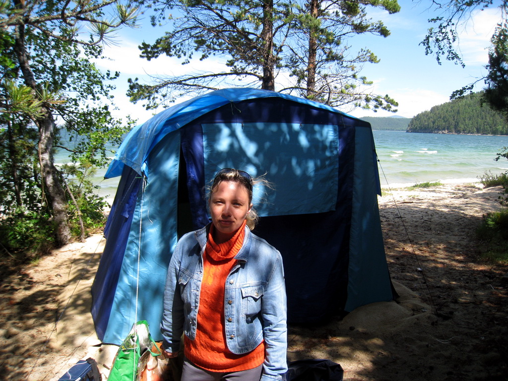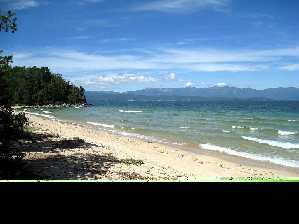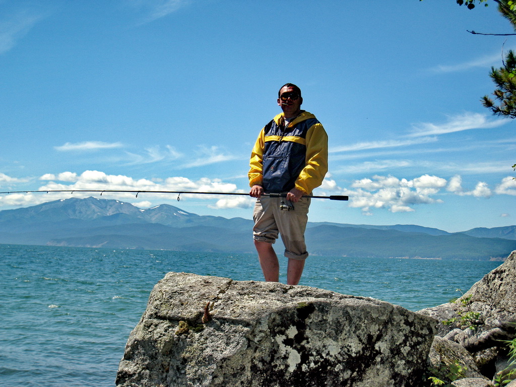 День 17. Рыболовная база «Земля байкала». Утром никуда не торопясь, проснулись.. на улице солнышко, но на озере волна. Путем розжига оставшихся поленьев вскипятили котелок, попили кофе.. и приступили к непосредственном перебуториванию вещей в машине – раскладывая на те, которые понадобятся на базе, и на те, которые не понадобятся. Делали все это не торопясь, так как были уверены, что лодка за нами придет ближе к вечеру. По закону подлости – лодка за нами пришла в 12 утра. Подошел Володя – директор базы, и сказал собираться… так как волна – то надо уйти пораньше на базу. Пришлось собираться быстро. Но вроде ничего не забыли. Машину отогнал к их дому в Монахово – обещали проследить. Сложили вещи в лодку – и пошли на базу. От Монахово до базы на лодке с 45 сильным мотором – идти около 40 минут.. Так как ветер с озера – а в то время года ветер практически всегда с озера – то лодка идет сначала до Курбулика, а затем пересекает чивыркуйский залив в месте его сужения. Когда вышли на середину залива – волна начала себя покзаывать – лодку кидало – мы прыгали.. так продолжалось минут 20 и – наконец мы зашли в тихую бухточку, закрытую от ветра. Это так называемый запасной аэродром в случае ветра. В это время в основном месте стоянки лодок – волны с барашками и пристать к берегу – очень сложно – а здесь – тишина и покой. Вышли с лодки – и пошли по тропинке на базу. На базе есть все необходимое для жилья – столовая баня палатки и домики. Вот в такой палатке жили мы: Внутри небольшой тамбур, в основном пространстве – установлен деревянный большой лежак – и на него положено два двуспальных матраца – рядом.. пространства для спанья – вполне хватало.на матрацах покрывала и спальники.. Спальники мы сразу сцепили молниями – что бы cделать двуспальное одеяло, а наш спальник – положили на матрац- расстегнутый как одеяло – получилось – вполне тепло – ночью не мерзли.. В это время от лодки притащили остальные вещи- мы разложились и пошли обедать. После немного погуляли по бухте – которая основная.. Кстати – горы на той стороне – это полуостров Святой Нос – т.е. место откуда нас сюда привезли А вот там где кончается последняя сопка – начинается открытый Байкал. Обратите внимание на прозрачность воды. Просто красота. В общем погляли, и решили пойти в ту бухту – где нет ветра – покидать спиннинг, и попробовать чтонибудь поймать.. Инструктора на базе нас отговраивали – но делать то все равно нечего.. решили идти. В день заезда не возят на рыбалку – поэтому – надо самим что то придумывать. В той бухте нашли замечательный камень – на котором и решили половить окунька/ Окунек не ловился Ну а мы пробовали – пока не надоело.. Надоело часа через два, но не в платку же идти.. поэтому – убрали спиннинги, сходили за пивасиком в палатку – и начали лениво изображать из себя моржей, вылезших из байкала – отдыхющих на скалистом побережье. %).. хорошо было – словами не передать… Мы доехали – вперид много времени.. никуда торопиться не надо… просто праздник какой-то.. А вот вид на запасной аэродром – там наши лодки.. Солнце потихоньку лениво ползло к закату… Это вид на Бакланий остров: Он слева виднеется. Покушамши пива – пошли на полдник. На полднике познакомились с группой москвичей – приехавших ловить большого окуня - шесть человек – одна компания. Больше на эту неделю на базу никто
