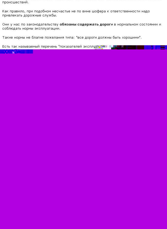 Кельт, а Магадане такие прецеденты споров с дорожниками уже были. я знаю о двух исках к дорожникам и эти иски были выиграны. но там дело касалось выбоин и дорожного покрытия.