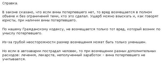 Кельт, а Магадане такие прецеденты споров с дорожниками уже были. я знаю о двух исках к дорожникам и эти иски были выиграны. но там дело касалось выбоин и дорожного покрытия. главная заковыка это в знании СНИПОВ и умении ими аргументировать свою позицию. а выиграть у дорожников можно, но при большом желании, потому как тягомотно это очень. Щас изучаю протокол. Товарищ на месте не проявил нужной твердолобости, в итоге... Смотрю есть ли перспектива -------------------- |
