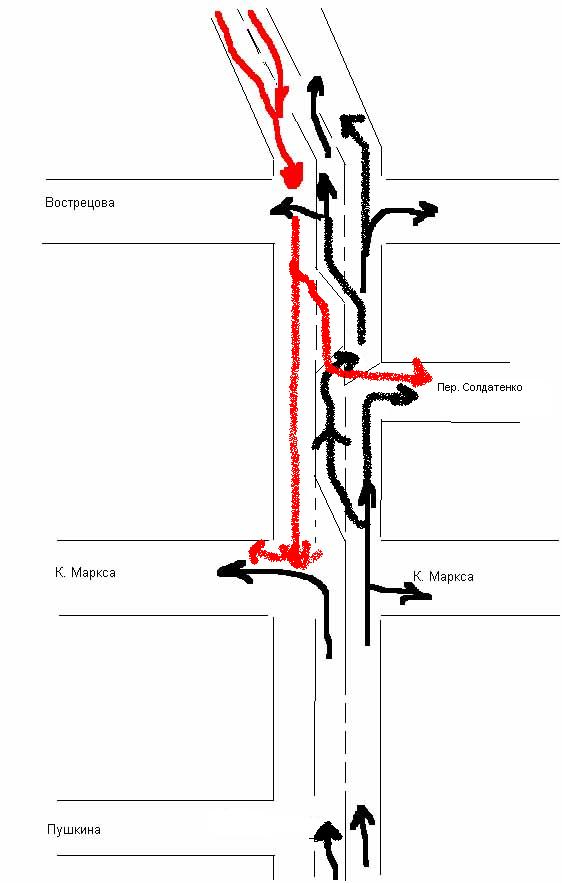 между вострецова и К.Маркса есть еще один перекресток! а схема с вострецова нарисована вроде не верно :-\