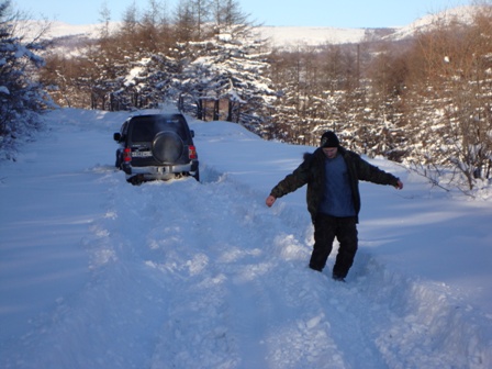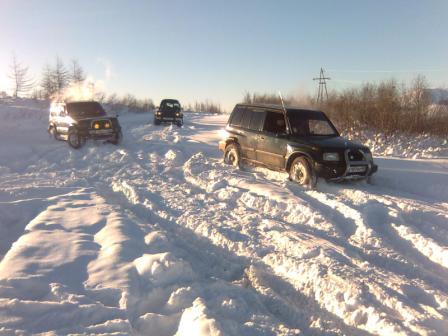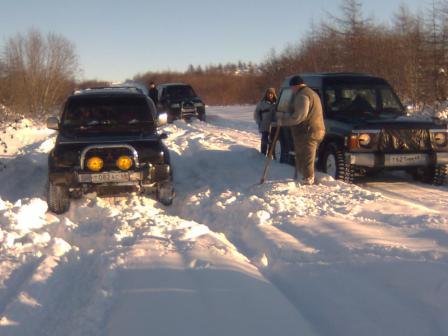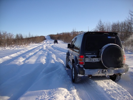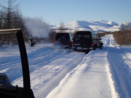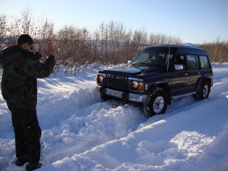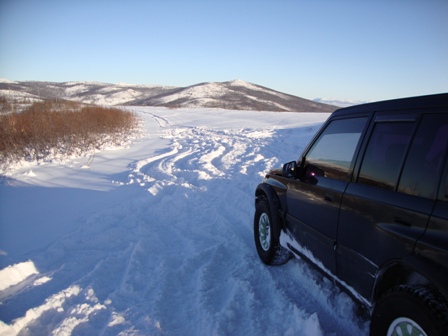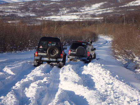 Сегодня пробовал от Горняка до Дукчи. По верхней дороге - только снегоход проехал, "колёсные" не бороздили. Поехал по берегу, упёрся в развилку. Направо, вдоль речки, видны засыпанные колёсные следы и снегоход недавно прошёл. В одну машину не решил соваться. Пошёл влево. Там кто-то рылся, причём хорошо. Но сейчас наст схватился, да и снега не много. В-общем, проехал с километр-полтора (веток очень много, по кузову жёстко лупят/царапают) и всё. Дорога кончилась: пару деревьев снегом придавило к земле - не рубить же их. Так что пришлось развернуться.