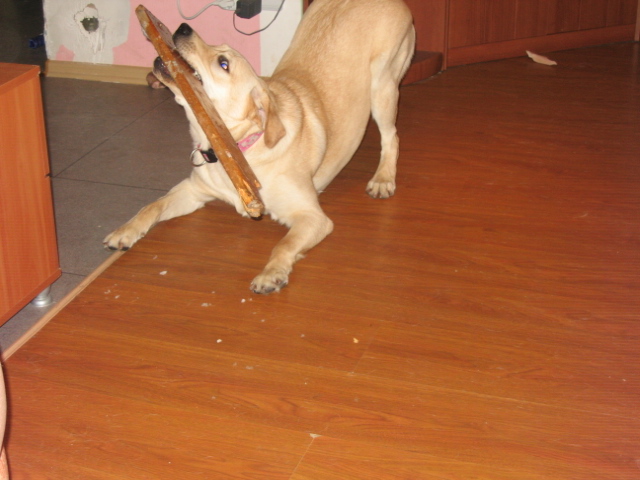 Я понял!!! у меня собака никакой не Лабрадор.. она новый вид Ретриверов: Аля-БОБЕР Ретривер!!! (за два дня сгрызла две палки)