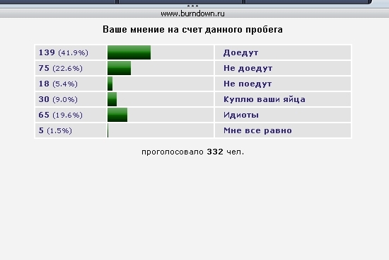 Цитата(Pravokator @ 7.1.2010, 20:35) ссылка доступна только зарегистрированным Старт откладывается на 20-е числа января, в связи с задержкой поставок из Москвы. Транспорт еще не доделан. Так и зима пройдёт, и понта уже не будет -------------------- тел. 8 914 868 5156