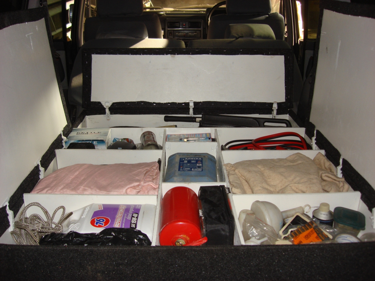 вот выкладываю обещанные фото, на них все написано. единственно в паджеро коротыше остается проблема куда девать весь багаж, который не используется как подушка/матрац/одеяло. впрочем есть как минимум пара вариантов: по максимуму распихать вещи под передние сидения, боковые полки у задних арок; иметь багажник-кофр типа Thule; спрятать все под машину/в палатку/здоровый ящик/непромокаемый мешок.. у владельцев длиномеров такой проблемы возникнуть не должно