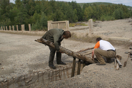 Кто ещё может подсказать места для поездок на недоприводах?! Грунтовки и гравийки не боимся Забыл ещё пару маршрутов. Но это если автомобили выездные за Палатку. На Ольское плато: со 150-го км налево. Сейчас, кстати, дорога сухая, это редкое явление. Там километров 5-6 можно проехать до реки, а если очень постараться и удалить лишние большие камни, то можно и дальше проехать через реки. Потом немного пройти пешком по лесу и можно дойти до наледи, сейчас есть, вчера видел. Карта - километровка, в одном квадрате при печати должно получиться 2 см. Фото дороги и реки. (Река не в том месте, где брод, а в том, где место отдыха.) Сразу после поворота с трассы будет мост через Татынгывчан. Перед ним и после него трещины. Их придётся засыпать землёй и камнями, я в прошлом году на "жучке" так проходил этот мост. См. фото. Сообщение отредактировал gesel - 23.6.2008, 13:09 -------------------- Имеющий глаза - увидит, имеющий уши - услышит, имеющий мозги - поймёт...