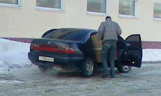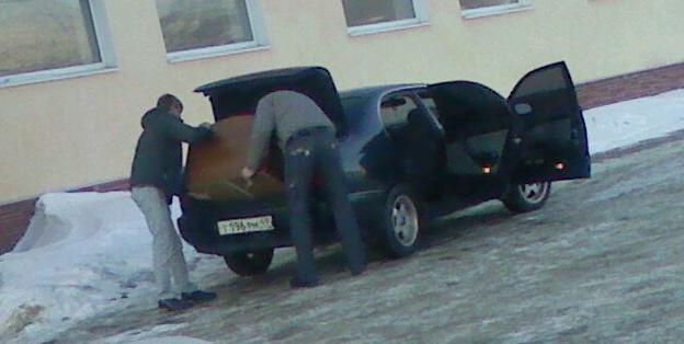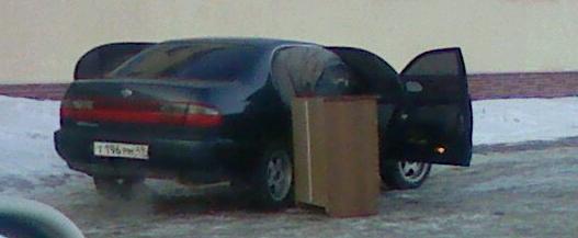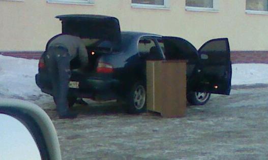 Вот вам комиксы под названием: "Эх, чёж я не купил универсал". К сожалению картину эту я сам не досмотрел, но пихали эту тумбочку парни минут двадцать.