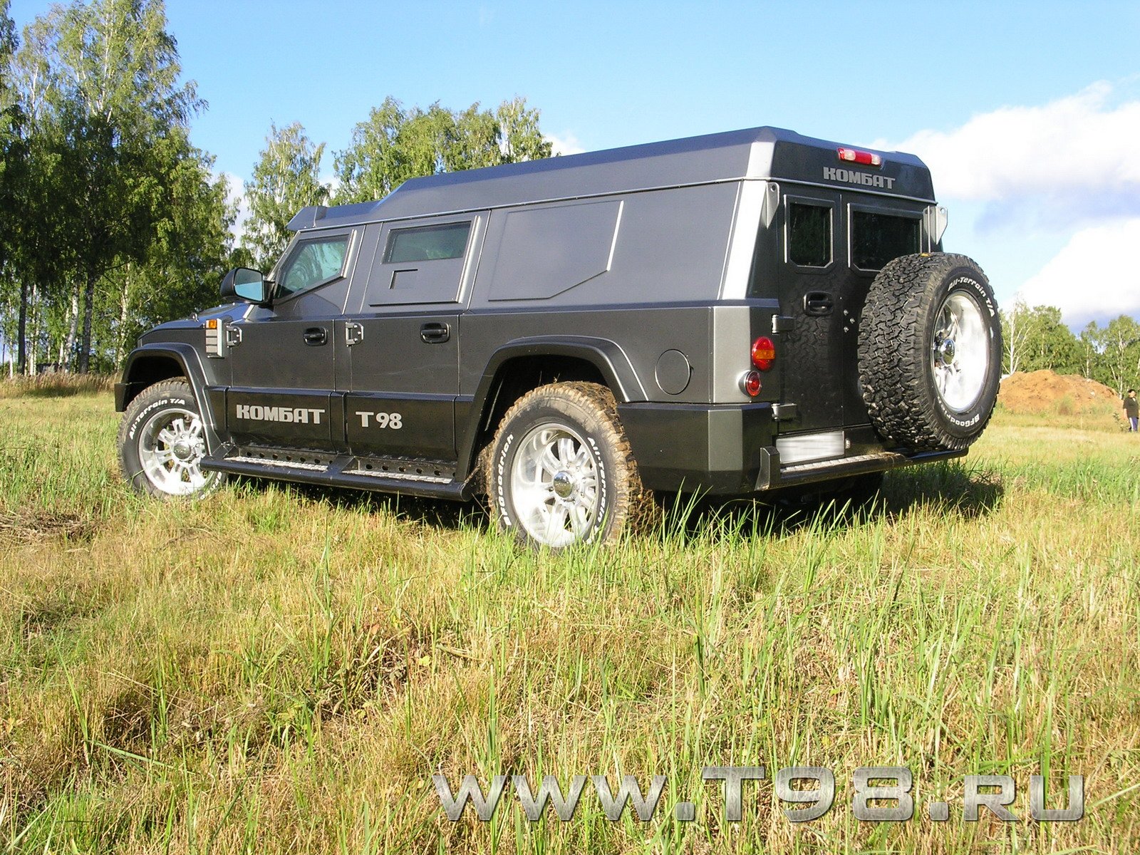 Автомобиль специальный модели Т98 представлен в двух вариантах исполнения 5 местный седан и 9(12) местный универсал. Кузов выполнен в виде цельнометаллической конструкции из высоколегированной стали по безрамной схеме, обеспечивающей максимальные прочностные параметры кузова и конструкции автомобиля в целом. Шасси автомобиля выполнено с применением узлов и агрегатов американского производства фирмы General Motors, таких, как передняя и задняя подвеска, рулевое управление и двигатель с трансмиссией, аналогичные применяются на тяжелых внедорожниках "Suburban 2500" усиленной серии и малотоннажных грузовиках С/К серии компании GM. Так же аналогичный двигатель и трансмиссия устанавливается на армейский автомобиль "Hammer". www.t98.ru Ни одной фотки ходовки, заразы. Сообщение отредактировал anastas - 30.1.2009, 13:18 -------------------- Ρωσική Έλληνες δεν παραιτηθεί