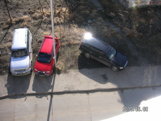никА, очень плохо у вас во дворе с парковкой... Надо совместно с жильцами что-то предпринимать и как-то "отбивать" газоны, но культурно и по закону. Горько читать, как ты сетуешь что невозможно втиснуть камик, потому что "носорог" всё испортил. Но все вы одинаково постыдно стоите на газоне.