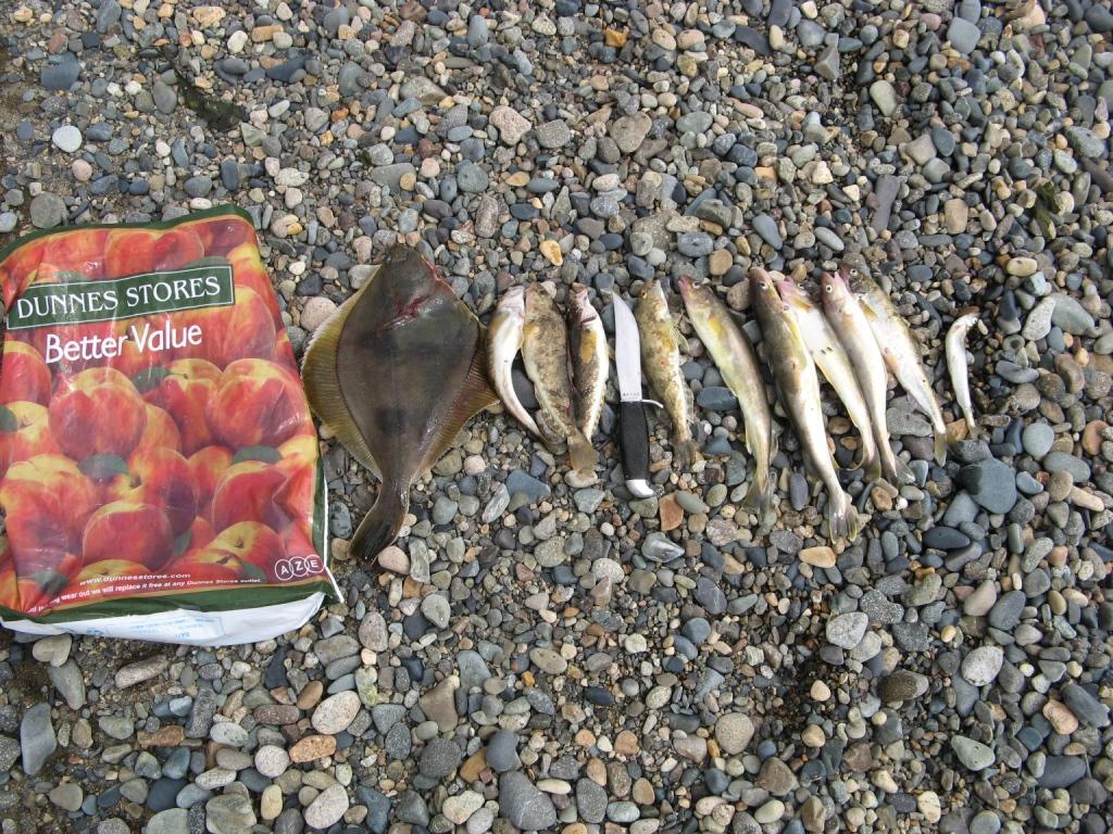 Произошел забавный случай - делал заброс, мимо пролетала чайка, снасть легла на птицу. Ошарашенная чайка ломанулась в открытое море, леска с катушки стремительно разматывалась и размотавшись до конца, снасть шлепнулась в море, освободив недоуменную птицу. Это был мой самый дальний заброс как на этой рыбалке, так и вообще в жизни. И еще маленькая неприятность - рыбачил на берегу, жену разморило в машине - уснула. Подошла собака (видимо с базы Магтура), спокойно нашла пакет с едой, аккуратно взяла его в зубы и трусцой ломанулась в лес. Крики и камни ее не смутили, догнать я ее не смог в сапогах. В итоге лишились всего хлеба, банки тушенки и контейнера с сосисками. Искать по лесу и разбираться на базе не стал - собака молодец, а нам урок - не оставляй без присмотра или убирай в машину. Уёк шел валом, нечем ловить было, да и не охочь я до него. А чайки пировали на славу. Уха из окуня - просто объедение. Итог 10 кг потрошеной рыбы привезли домой. На фото - 1.эту камбалу я отпустил, 2. отдельные экземпляры последней выловленной рыбы перед отъездом. -------------------- |