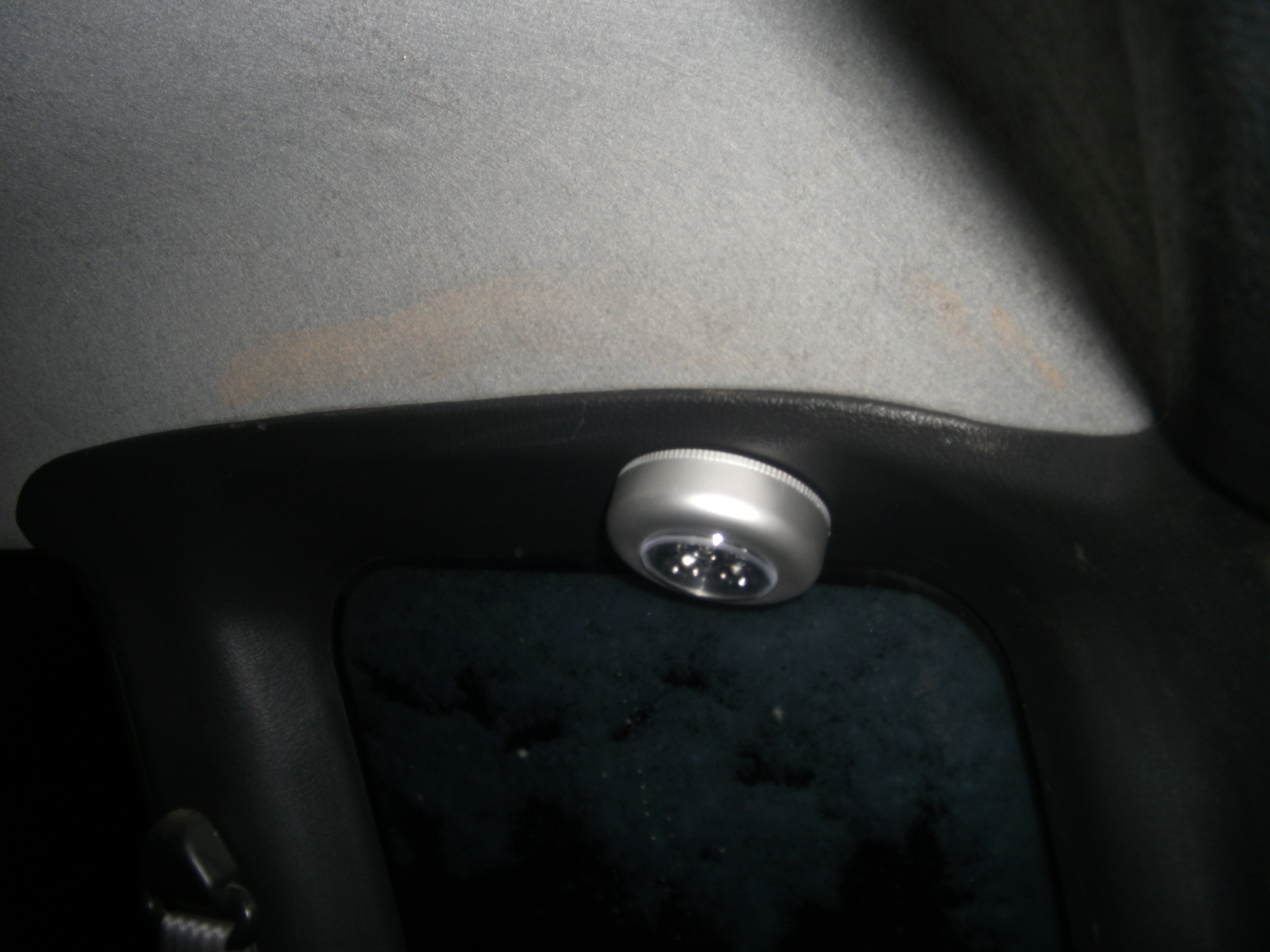 надоело что нету света в багажнике!!!! решил исправить. думал протянуть туда 12 волт, плафон втулить и т д. а вчера увидел в северном фонари круглые такие с 3 светодиодами на батарейках и уже с двухсторонним скотчем.подумал-ну не часто ж я в багажнике часами роюсь-ну диодных на полгода-год хватит, а потом батареи сменю. включаются нажатием на них(оч удобно -искать не надо). купил 2 по 150 р. приклеил тут же на стоянке сверху к пластику который вокруг задних боковых окон. ширина и наклон пластика в этом месте как для них сделан. светят туда куда надо,освещают ярко каждый свою половину багажника (на фото выглядит слабее чем на самом деле). ДОВОЛЕН. Сообщение отредактировал keribas - 17.11.2010, 22:18 -------------------- А У НАС ВСЕ ПУЧКОМ!!!