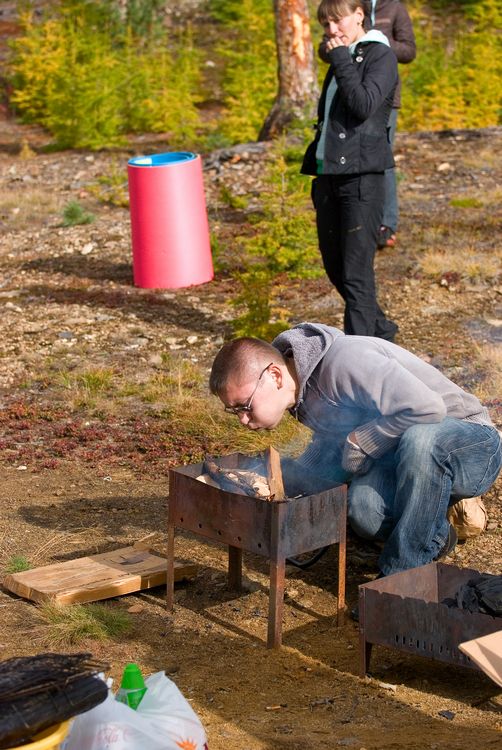 В прошлую субботу у меня вдруг возникло желание сбежать из железо-бетонных объятий города. Стал названивать друзьям в поисках компании, если бы таковой не нашлось, сбежал бы один. В итоге узнал, что в воскресенье утром группа товарищей с автофорума, собирается ехать на озеро Гранд. Мне удалось напроситься в эту поездку и меня взяли "предателем":) Очередная мечта идиота сбылась, я попал-таки на это озеро. Компания подобралась веселая, я даже не заметил, как доехали до места. За фотоаппарат я взялся уже на месте проведения мероприятия. Надо заметить, что предыдущие отдыхающие позаботились о последующих посетителях этого живописного озера, украсив поляны кучами мусора и бутылок. Для начала пришлось произвести уборку, старательно похоронив то, что не сгорело. Но фотографий об этом не будет. Одним из пунктов культурно-массового мероприятия был подъем на вершину сопки и установка знамени автофорума, попутно шишки, грибы, ягоды, и сопутствующий банкет.