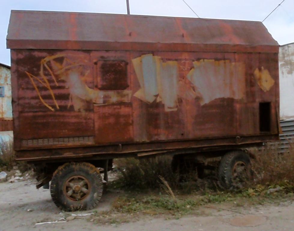 На вагончике прикручены номера. Выходит, что он стоит на учёте. Вопрос первый: что говорит про это... (прости госсподи) транспортное средство Его Величество Технический Регламент? Вопрос второй: что там такое увидела рыбка, чего нам не видно с этого ракурса? |