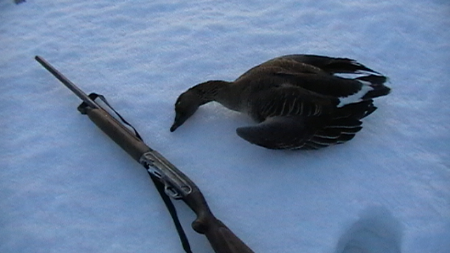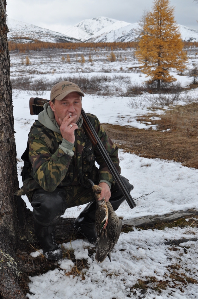 На верху, на нашей базе ещё снега больше двух метров, я думал куда мы едим, там шо гуси в снегу нерестится будут Спустились в низ на снегоходе км-20 там начались уже проталины, потом ещё 20км, там уже травка зелёная полезла, но по ночам мороз за десятку валит, в мае там правда ночи уже каротенькие стали. Рано утром часа в три пошол гусь, но всё время то с лева то с права, меня начало уже колотить от волнения и холода, начал менять места, искать места полудше, но на новых местах происходило тоже самое. Вернувшись на старое место,- обалдел, гусь ходил спокойненько между моими профилями (профиль-чучело гуся из фонеры), на выстрел канечно он меня не подпустил Чёто у меня не получается закачать фотки Сразу скажу, гуся мне так и не удалось подстрелить не весной не осенью хоть месные с кем я был на охоте задень убивали по десятку гусей. А вот утей и рыбки я вдоволь настрелялся и наловился. Фотки попозжа. но это ещё не всё, всё только начинается, края том обалденные, богатые на, на всё -------------------- Всё только начинается!!!