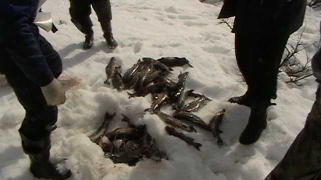 Наконец-то я нашол охотничков ![]() Всё о чём я буду писать, можно назвать браконьерством, так-как охотился без лицензии и путёвок, но есть одно опровдание, охотился не ради наживы и удовольствия, а для пополнения свежего мяса в геологическую партию.(хотя решайте сами Вышли с Тиличик, до базавого лагеря 120км и шесть суток ходу в калонне тракторов. На утро пятого дня, пурга стихла, к обеду подъехал к нам месный проводник на снегоходе. Я пересел на снегоход, а ГТТ отпустили (оно было чужое) Пройдя калонной за день км 20 и оставив след на снегу до базавого лагеря (Малетойваям) для тракторов, мы рванули на западное побережье на рыбалку за ЩУКОЙ!!! За час мы пробежали на снегоходе километров сорок в сторону Охотского моря, остановились посреди тундры засыпанной подзавязку снегом, но два огромных валуна были без снега, как пояснили месные проводники это священное место и они ему поклоняются, и штоб была удачная рыбалка с охотой и погодой, надо положить на эти камни патроны, сигареты или ещё что-нибуть, дабы не гневить духа ТАЙГИ!! От этого места отъехали ещё км20 по речки Энынгваям, правда я думал что мы шли всё время по тундре Остановились в начале Порапольского дола, просверлили лунки, лёд почемуто был не толстый всего полтора метра, немного посидели клёва небыло (ловили на блесну) мужики уехали искать клёвые места а я остался на этом месте, как только они уехали тут всё и началось Моя первая ЩУКА Потом вторая Переехали потом на новое место, на этой же речке, и там начали ловить харюзов. Харюза ловились на удивление крупные, больше килограмма Очень странные там харюза, ловились они на блесну но на тройник ципляли кусочек сала с хахляндии их наверное завезли Заночевали в домике, приготовели вечером ухи с харюзов, а на утро поехали обратно на базу каторой пока ещё небыло. На базе уже стояла калонна с тракторами и два урала с топливом, уралы оказываются идут по снегу быстрее чем трактора, да и сьели трактора за шесть суток больше 10 тонн саляры, а прошли всего 120км от восточного побережья Камчатки. Через пару недель поехали на охоту на гуся. -------------------- Всё только начинается!!!