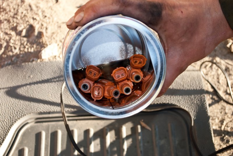 Итак, имеем Эскудо ТL52W, двигатель J20A. Машина тупая, педаль газа тяжелая, заводится - когда как. Для начала готовим необходимый инвентарь : ключи, головки (длинные, короткие)(8,10,12), удленители головок, трещетка, отвертки, пассатижи, ветошь,WD-40,Карбклинер, острый нож, герметик(черный или красный),небольшие ёмкости,кусок 15/15 прокладочного материала, например ПАРОНИТА, чистые пакеты - штук 5. Для чистки форсунок нам понадобятся провода, батарея на 4,5 вольт, кембрики, кнопка по типу замыкателя импульсного, трубка резиновая эластичная, зажимы как на топливных фильтрах. Как это всё собрать: делаем линию с импульсным выключателем (нажал -ток, отпустил - нет тока) - лучше делать подлиннее, для того что бы можно было нажимать ногой, на один конец закрепляем батарею, на другом - вставляем кембреки - диаметр-3 или 4 мм, можно изготовить из изоляции провода подходящего диаметра - суть та же. У форсунки два контакта длинной 10 мм, шириной 0,5 мм, высотой 3 мм. Подключая форсунку, разницы не будет плюс или минус. Снимаем распылитель на карбклинере - он диаметром примерно 10 мм. Смотрим на распылитель сверху, видим два отверстия, берем зажигалку и запаиваем их,берем нож и делаем срез от выпускного отверстия кверху - суть действий в следующем: необходимо сделать распыление не в бок а вверх. Надеваем распылитель на карбклинер, зажимаем зажимом проверям работу - бьет вверх? - хорошо! снизу не сифонит? - хорошо! Проверяем цепь - там где должна быть форсунка подключаем лампочку, нажимаем на кнопочку с частотой 3-5 раз/сек. Светит? хорошо! Импульсно? Хорошо! Вообще всю работу лучше делать в первой половине буднего дня - так если потерял какой болт, можно было в магазин сгонять. Отсоединяем клемму аккумулятора. Открываем лючок бензобака, снимаем крышку. Всё это для избавления от избытка давления в топл.магистрали. Снимаем рез.трубу воздуховода, отсоединяем все фишки от блока дрос.заслонки (их не перепутаете, они все разные). Пробрызгиваем болты WD,а конкретно,2 болта и 2 гайки крепежа БДЗ (то ли на 10, то ли на 12), 2 болтика(на 8+крест под отвертку) клапана холостого хода, трубки охл.жидкости и карт.газов. Снимаем тросики. Запомните положение гаек, чтобы потом не мучатся. Снимаем трубки ОЖ и воздушные трубки. Сразу подготовьте заглушки, можно болты подходящего диаметра. Откручиваем корпус дроссельной заслонки. Если прокладка осталась целой - хорошо, если нет - скалупываем с поверхностей все остатки. Чистим дроссель карбклинером: дроссельная заслонка и все каналы. Смотрим во впускной коллектор, в него заходит трубка от клапана ЕЖР, пробрызгиваем её - хорошо пробрызгиваем, т.к. до клапана ЕЖР добраться проблематично (но в скором времени и туда залезу), можно пока прочистить трубку. Скручиваем клапан холостого хода (скручивать лучше головой на 8). Сразу обратите внимание на кольцо-прокладку, не потеряйте её (прокладку обработатьWD-40 и убрать в чистый пакет). Аккуратно раскручиваем КХХ. Не потерять резиновое кольцо(красное) и пружинку (кольцо-прокладку обработатьWD-40 и убрать в чистый пакет ). Чистим КХХ, крутим – надо, чтобы нигде не клинило, сушим, брызгаем WD-40 тем самым смазываем вращающиеся элементы, протираем, пружинку на место, кольцо красное на место, собираем, затягиваем винты. От того что вы вращали клапан ничего страшного не произойдет - при включении зажигания он сам встанет как ему надо - вы