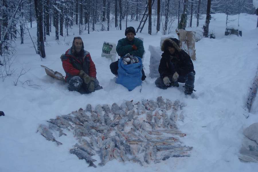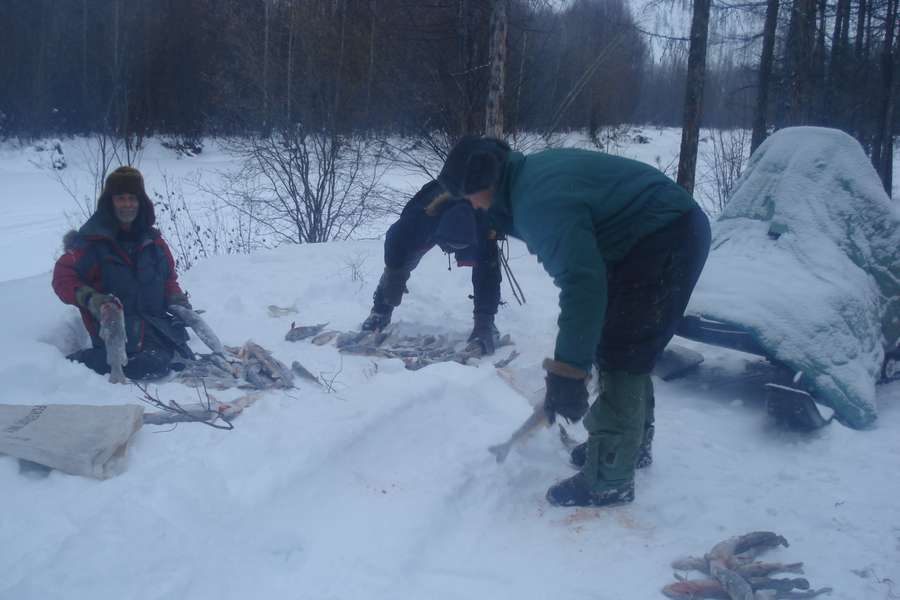 Заповедные места не выдаём. Могу только сказать. что далеко, и там очень холодно и хорошо, что кроме нас никого никогда не бывает. Это наш охотучасток. На снегоходе около 90км.