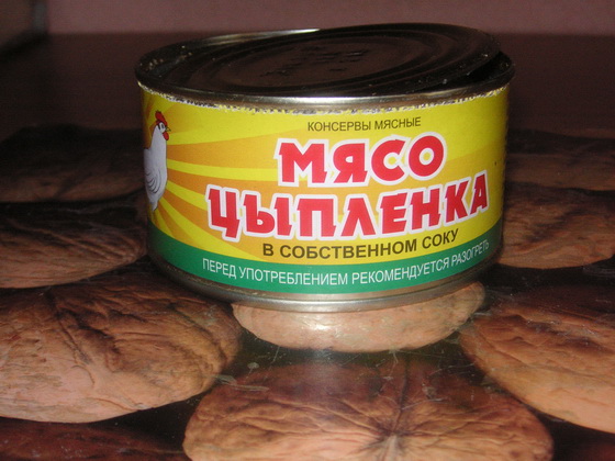 "Мясо цыпленка в собственном соку". Гадость неимоверная, от цыпленка там только кости. Это несъедобно. Вот жеж каматоз, а еще ГОСТ указали на упаковке! очень люблю сайру в масле, желтая такая этикетка на консервной банке, в следующий раз когда куплю сделаю фото - очень приличная сайрочка, целенькая, плотненько лежит, и столько сколько должно быть в банке. А лосось в масле оказался - гээээ, постараюсь сфотать, если продавец не притюкнет -------------------- |