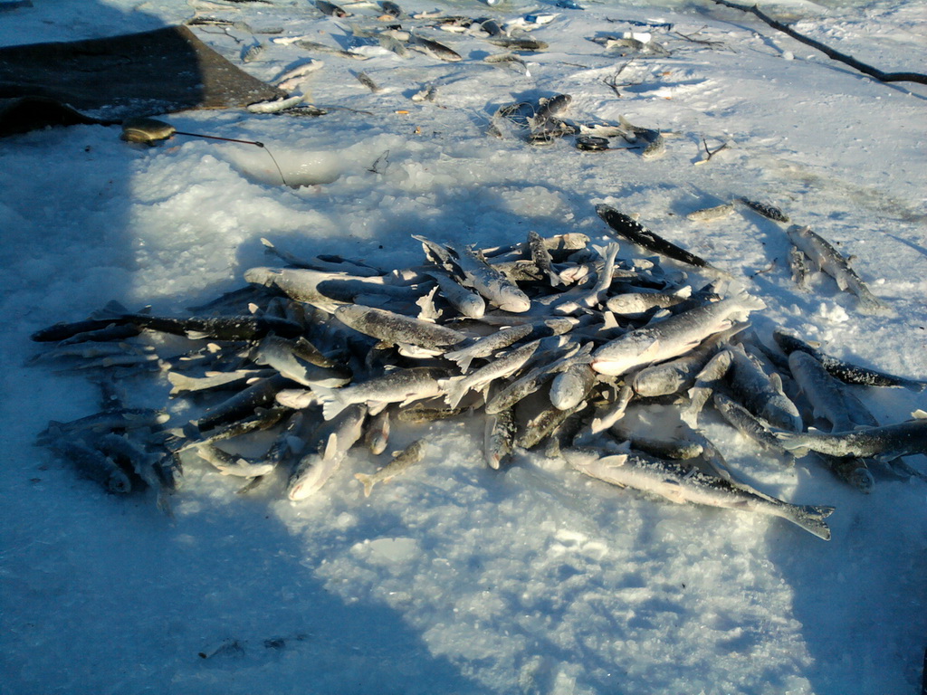 Отловились хорошо, за два дня получилось почти 15 кг. Это учитывая, что ловилось в основном до обеда (фактически до 12-13 ч), причем не только у нас. Очень приятно, что мелочи почти не было, один экземпляр еле пролез в лунку. Народ стоял по всему руслу, начиная с самого выезда на лед. Мы были в 20 км от поворота на Радуждный, но основная масса была выше. Не совсем понятно, на каком км находится Манинджа (кто знает, просветите!), мы поняли, что несколько ниже все-таки. Там масса лунок и место отличное, но народ прет упорно все выше и выше. Погода порадовала, рыба не подкачала, дорога отличная. Че раньше не поехали! -------------------- Рыбалка - самый трудоемкий способ расслабиться