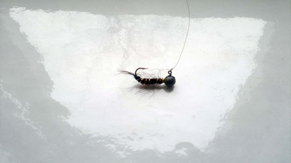 Зимой ловим на самодельные удочки - я в основном на желтый крючек с салатовым кембриком, а муж (Иван49) на серый крючек с салатовым кембриком. На самодур ну ооочень редко ловим, не неравится и не удобно наматывать.