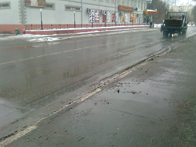 Гранитную крошку, если её не убирать вовремя(а её не будут убирать вовремя, так у нас принято), также раскатают до состояния мелкодисперсной пыли. И ещё нюанс, соли и реагенты в смеси с грязью/песком сохнут на машине дольше, нежели чем просто соль. Комки грязи более суток остаются влажными на машине, а просто соль высыхает быстро, особенно при движении, оставляя белёсый налёт. Вся беда в том, что у нас ничем пользоваться не умеют. Если песок, то кучами и без вывоза до лета. Если реагенты противолёдные, то без всякой меры в снег их сыпят, причём после песка, в итоге получается аццкая грязь. Если снег со дворов вывозят, то без предупреждения, вместе с посаженными летом деревьями и содранным асфальтом (который ложили летом в дождь). |