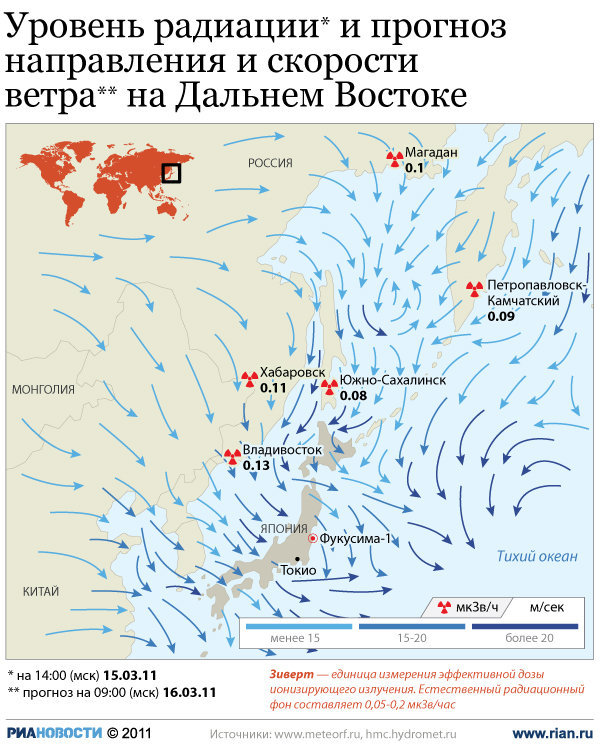 Уровень радиации и прогноз направления ветра на Дальнем Востоке