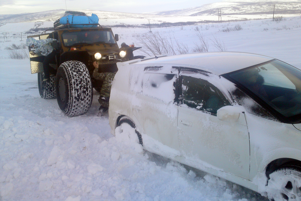 Эт мы были на трэколе, сколько по времени вы ехали назад? А вы как доехали, наледи не появились? Вот несколько фото (белую иномарку вытаскивали на Ольском перевале, как поняли девченки ночевали прям в машине, даже бензин закончился). Следующей зимой скорее всего будем ездить через Аттарган - дорога на мого короче. -------------------- Интуиция - это способность головы чуять жопой.
