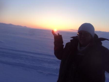 Выдвинулись! По пути способом "естественного отбора" отсеялось половина, к концу пути мы ехали составом: "Иван49", "ТИГРА", "Гусь" (не успела познакомиться, не знаю ника и имён.... на машине на запаске изображен гусь)... Добрались мы примерно за пять часов, без всяких засад и проблем (ну в общем виде)... Были всякие мелочи незначительные, но лебедки никто не доставал и лопату тоже... Приехали на берег, перекусили, поспали и на рыбалку... Солнце, тепло, а рыбы ноль!!!! Все стали усердно искать, но безуспешно....рыба махнула на всех хвостом. Было немного обидно, т.к. мы взяли с собой брата с материка, хотели ему рыбалку показать и корюшку слонячую, но увы и ах! Тогда вся наша чудная компания расставила палатку, закочегарила мангал и понеслось веселье, отдых, рассказы, байки и т.п. Оригинальной была водка совкусом мяты... Пожарили шашлык, позагорали (так что моськи обгорели) и поехали дурака валять по заливу. Иван и Дима полезли покарять скалу в районе сентябрёва, кидались в меня снежками, катались по таросам - дурковали по-полной... Ближе к закату вернулись к нашей гоп компании. Там уже "предводитель каманчей" благополучно смотрел сны. "Гусь" с товарищами пытался что-то сделать с поломанным задним мостом (не вдавалась в подробности..... может воздух в колесах меняли... "Блондинки" уехали по-ранше. Девчонки решили по дороге прогуляться, пофоткаться по светлу, рассмотреть окресности. А то всё время в ночь катаемся и ничего невидно. Доехали они отлично, как всегда приятно удивляя мужские экипажи (пусть завидую те, у кого кишка тонка) , в очередной раз доказывая, что женский экипаж это мега сила!!! Возвращались в субботу мы, сопровождая "Гуся". "Переднеприводный" эскудик - это мега зверь Павел с Радиком + вторая машина с Фаустом остались на НУПе ночевать. Господа!!! Это был отличнейший отдых!!! -------------------- |
