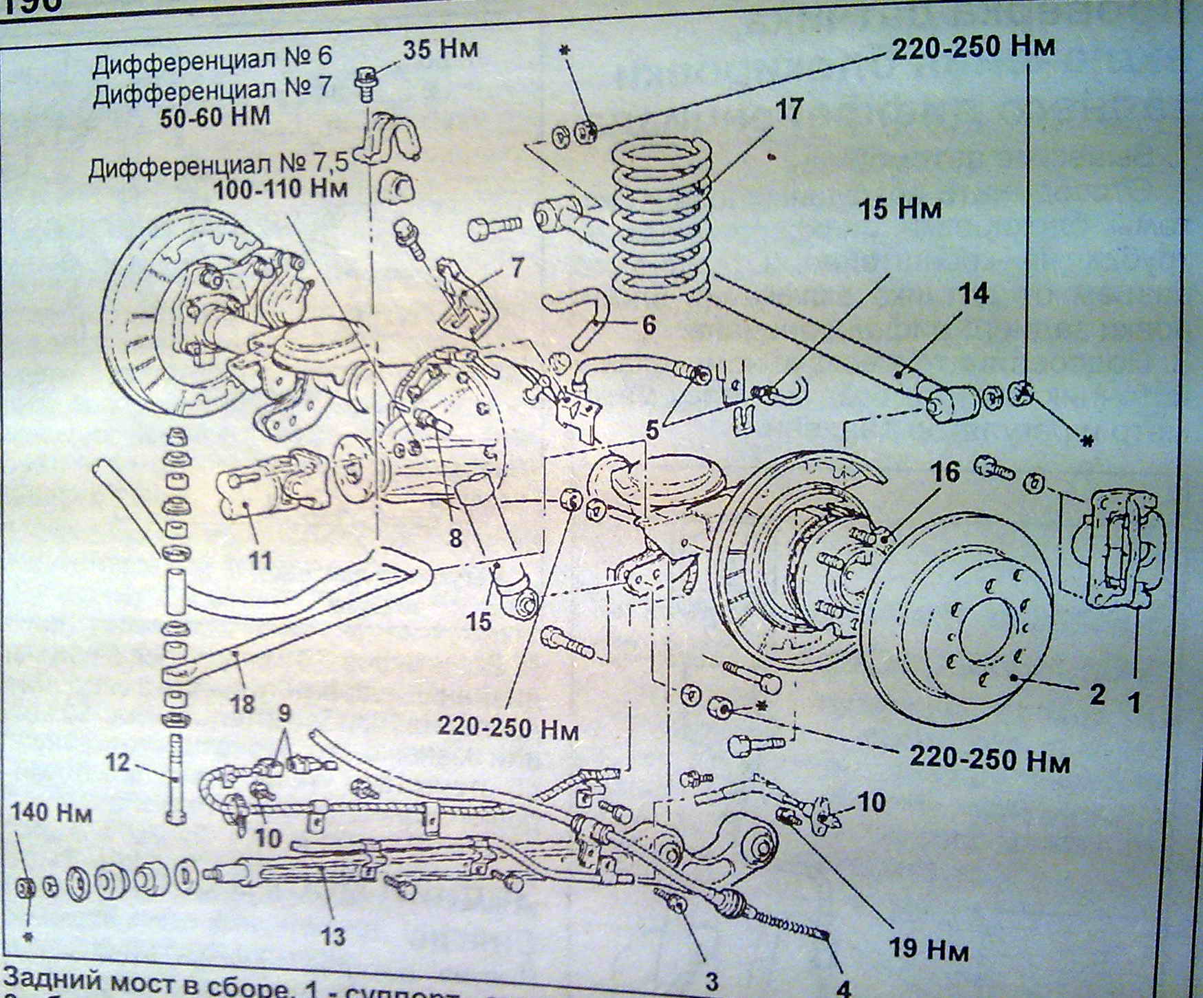 14 это Понара(для поперечной устойчивости) в местах её крепежа тоже есть резиновые втулки(сайлентблоки)их тоже надо проверить!Я думаю usver, имел ввиду места крепления рычага 13 (длинный рычаг, продольная устойчивость, держат мост) к кузову(раме) и к мосту там основное движение происзодит при неровностях, у меня просто Понары нет поэтому я забыл про неё!Смотри резинки на местах крепления рычага 90% они 5%понара и 5% что то другое.
