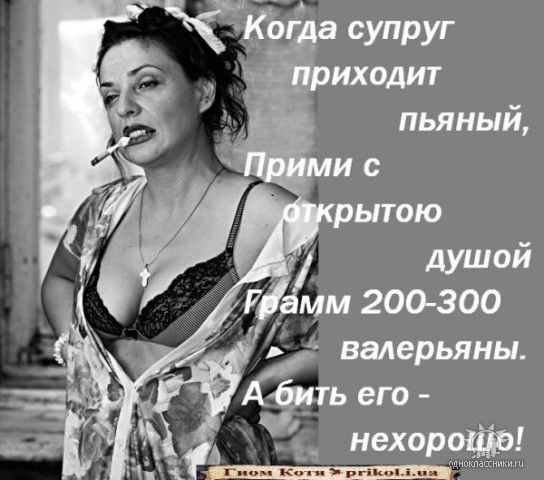 Если мужчина назвал женщину стервой, значит у него не получилось сделать из нее дуру!!! Если женщина назвала мыжчину скАтиной, значит, он сделал всё правильно... -------------------- Нормальные девушки сидят "по стойке смирно", судорожно вцепившись в руль, олицетворяя своим видом механика-водителя танка, идущего в атаку. На лице - ярая бдительность агента КГБ времён холодной войны (искоса бросаемые по сторонам короткие, но пристальные взгляды, типа "на чью мельницу воду льёшь, гражданин, а?")... (С) jey Спасибо! — Инструктор