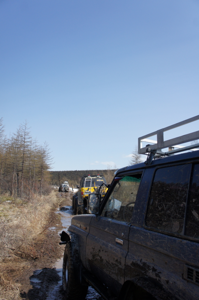 С Дельфином вообще ситуация комичная... мы в 2 машины на обратном пути поехали чинить "Ниву", пока чинили - где-то правее нас рокотал мотор и сигналили.... мы даже не смогли сразу заметить Паджерик закумуфлированный кучей грязи, который был от нас метрах в 300х. Мы шли по лесу спокойненько, а он - по полю, в итоге там и присел. Подъехали, вытащили. И вместо того чтобы поехать за нами - он снова ломанулся по полю. Ну как хочешь?