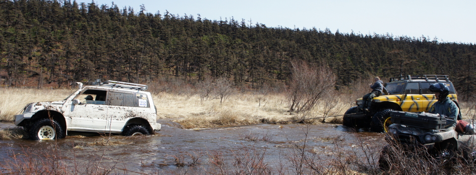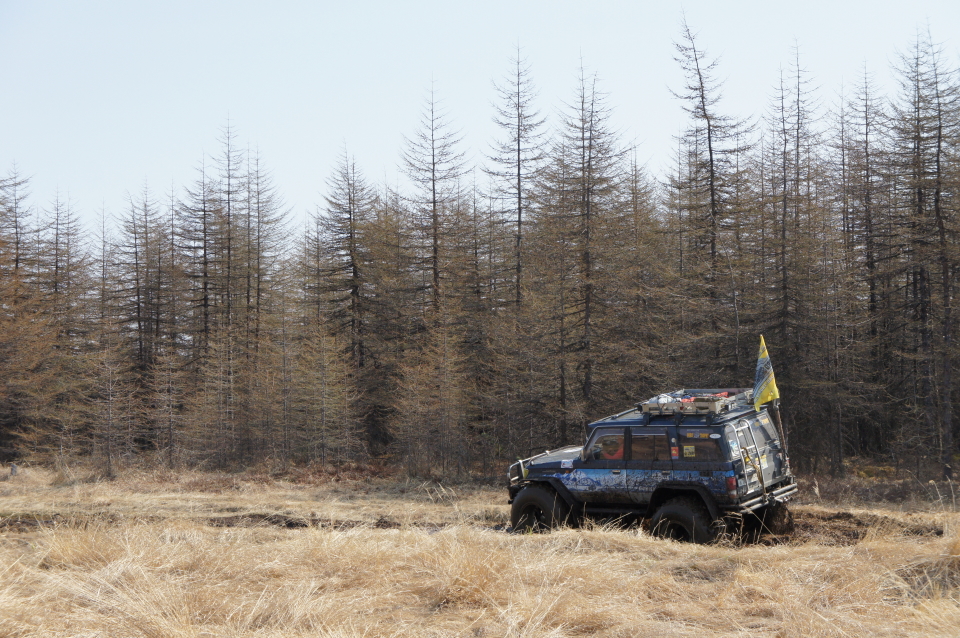 Поездка хороша!!! Протащили Паджерика через поля к Реке, дальше массы авто не хватила бы чтоб утащить его дальше - оставили =(((