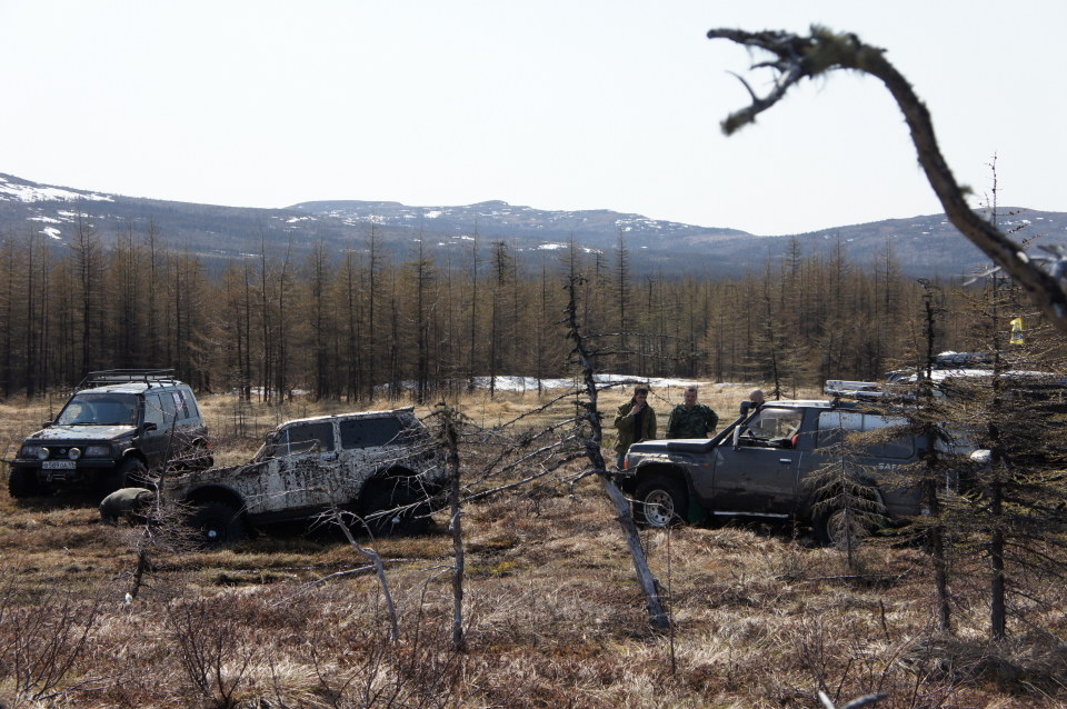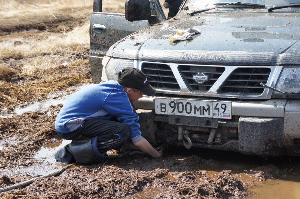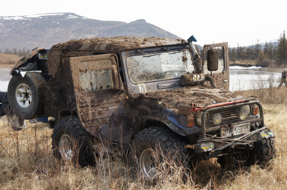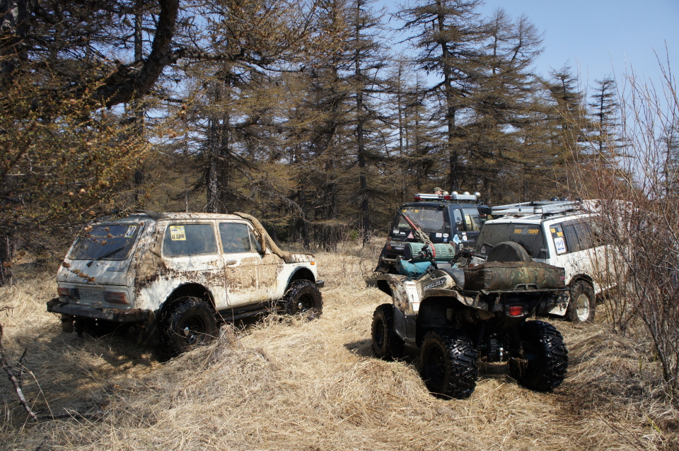 С Дельфином вообще ситуация комичная... мы в 2 машины на обратном пути поехали чинить "Ниву", пока чинили - где-то правее нас рокотал мотор и сигналили.... мы даже не смогли сразу заметить Паджерик закумуфлированный кучей грязи, который был от нас метрах в 300х. Мы шли по лесу спокойненько, а он - по полю, в итоге там и присел. Подъехали, вытащили. И вместо того чтобы поехать за нами - он снова ломанулся по полю. Ну как хочешь?