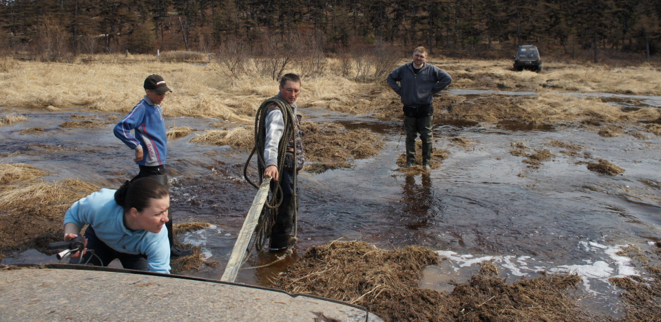 Поездка хороша!!! Протащили Паджерика через поля к Реке, дальше массы авто не хватила бы чтоб утащить его дальше - оставили =(((