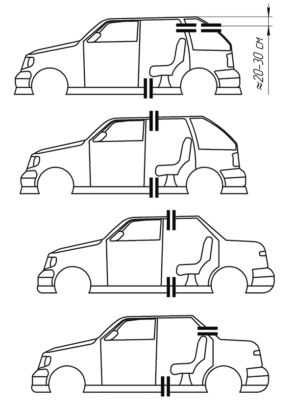 Шов сварки "распила" можно найти по "дорожке" герметика (иногда другого цвета), который проходит вдоль ребра поперек кузова, и пересекает по пути другие ребра жесткости.