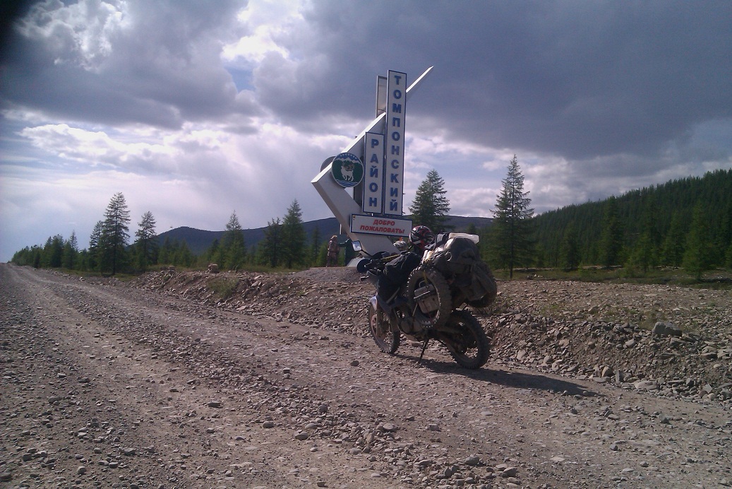 В целом едется хорошо, на эндурике просто замечательно. По Магаданской области дороги нормальные средняя скорость 90 км.ч, только дождь лил постоянно. По якутии дороги убитые. С речками повезло в Томпонском районе в верховьях две речки были не большие, хоть и дожди прошли.