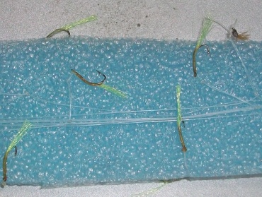 ...селедку я ловил на обыкновенные зимние корюшковые самодуры, обнаружил один момент: крючков больше 5шт. не надо... когда поймались 4 селедки, подумал, что сломаю удочку (тест прошла!), еще один момент: т.к. глубина (военный пирс) устанавливается около 4-х метров, то поплавок сделал скользящим, со стопорным узлом, для удобства заброса.