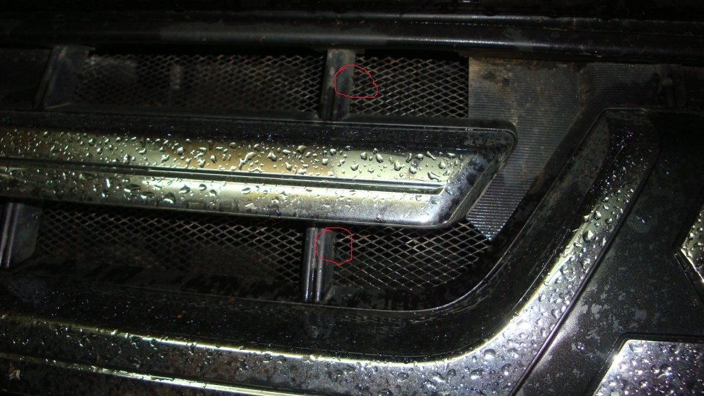 На трассу дальше Стекольного не ездил, да какая разница, я каждый день со Снежного в город мотаюсь, мухоты хватает. Вот фото решётки нижней и верхней. Красными кружками отметил места крепления хомутами ( черные хомуты, плохо но видно ) -------------------- |