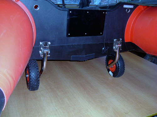 На Китайке продают небольшие пневматические колесики хорошей ширины, по 450 пара (стартовая). В Рыбачке - готовое изделие около 4 тыр, с какой-то ватной системой фиксации, под собственным весом.... Вот что-то не улыбается мне вариант сложить такое колесико с мотором на транце... Можно конечно засверлить отверстие под чеку... но как-то стремно за такие деньги доделывать изделие.