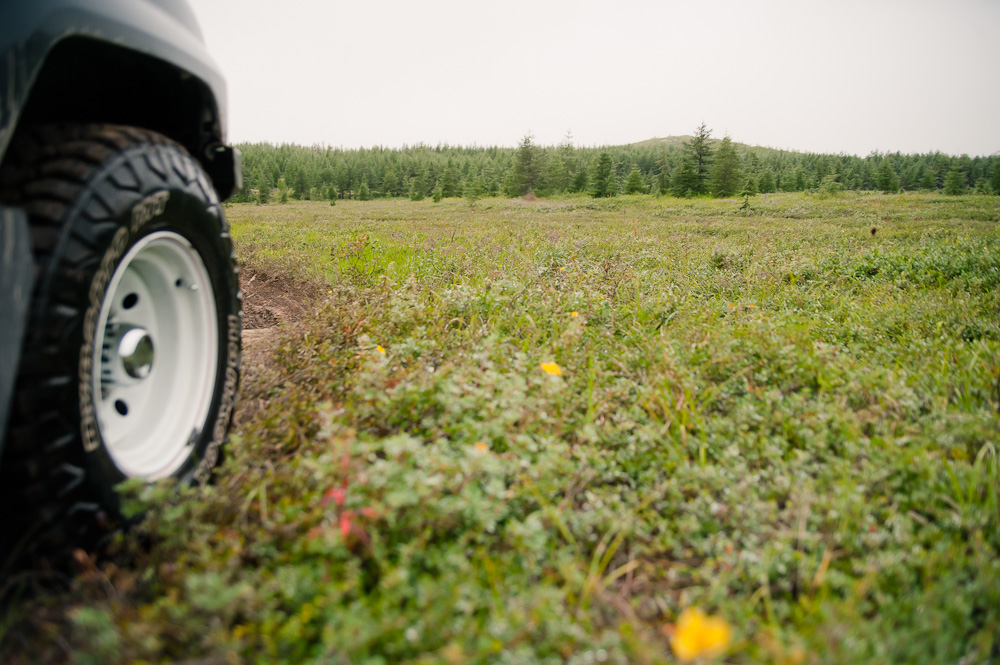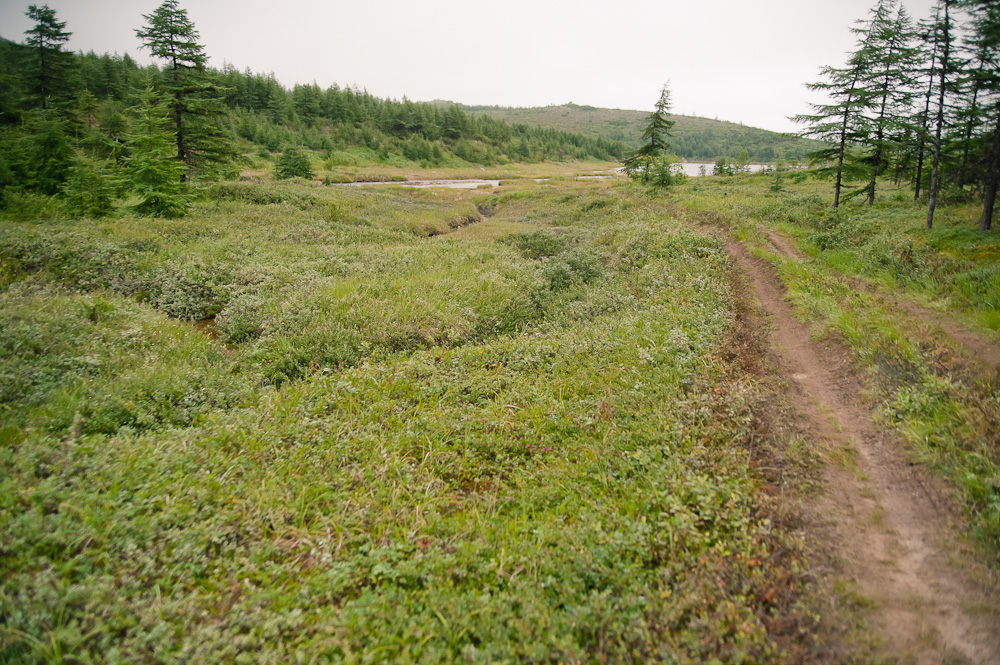 Вот и прокатились на это чудное место в одну машину... Ехали по нижней дороге вдоль водохран.. Время в пути без остановок в один конец 2 часа, средняя скорость 10 км/ч, общее расстояние туда-обратно примерно 39 км. Максимальная высота на перевале 250 м. Это примерно середина пути. Получилось связаться по радиостанции с городом. Мальдяк находясь на якутской ответил носимую радиостанция, а я c автомобильной. В общем дорога сухая, объездами не пользовался. На вторым водохранилищем много жимолости и голубики. На стоке проехать можно но я бы это делал подумав и аккуратно, не спеша шансы закоцать пластик и глушитель велики.