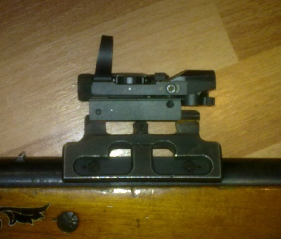 VIN*49,такой вариант сам собой напрашивается, первым же. Просто и с минимальными переделками, да и крон не пострадает... но что меня в нём смутило вчера: ну очень высоко прицел встанет, контакта со щекой вообще не будет, пожалуй, это раз... и второе - установка прицела не над стволом, а немного со смещением применяется для оптики, при том, что при такой установке предполагается стрельба на достаточно дальние дистанции. Тогда не так критична несоосность прицела и ствола. Как себя при таком раскладе поведёт коллиматор на дробовике, просто не знаю...не приходилось пробовать...Вот как-то так я прикидывал...
