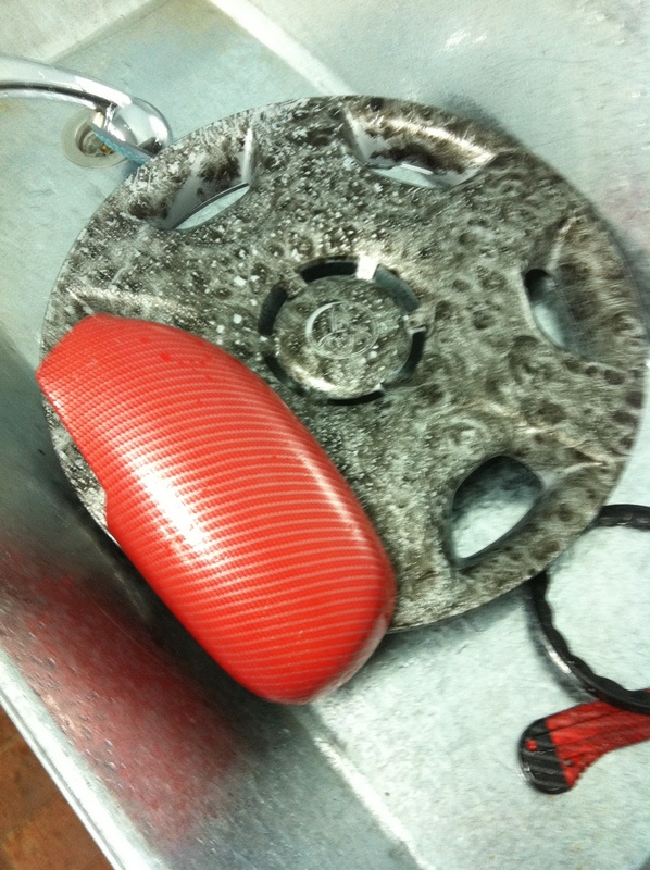 Это не обклейка пленкой в обычном понимании. Почитайте про технологию аквапринта (водная печать). На любом авто форуме (да и не только на авто, даже на оружейном видел, так как сфера применения куда шире авто) есть тот, кто предлагает такие услуги. Может проще выслать детали тому, у кого всё налажено? Наши местные похоже прекратили предоставлять свои услуги.