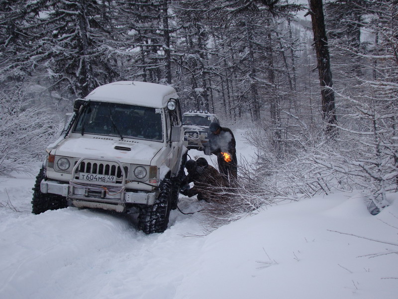 Собрались наши экипажи на Оле , возле всеми любимого м-на "Щит", на рыбалку за "МелкойВодкой")) ...До чего ж суровые и самоуверенные джиперы, что им не придется выходить из машины и все будут делать только штурманы, да не тут то было, порой приходится и самому выйти...[attachment=118068:5.JPG] Первая преграда, небольшой подъемчик [attachment=118069:6.JPG], где прошел естественный отбор экипаж Делики [attachment=118070:7.JPG] , который развернулся назад-домой До 3-го НУПа доехали без преград, как по асфальту...(соблюдая скоростной режим, ехали без остановок, фото поэтому нет=)) ) НУП 3 [attachment=118071:8.JPG] По дороге к оз.Чистому [attachment=118072:9.JPG], через Чистое ехали в абсолютной тишине в эфире, испытывая страх)) У подножья перевала, встретили экипажи паджиков 3 шт. и УаЗа [attachment=118073:10.JPG], которые пытались обойти Крузака [attachment=118074:11.JPG] (прошедшего далее Делики, но увы...) Наша колона экипажей стояла в ожидании [attachment=118075:12.JPG] далее пошли мы, первый Паша ZZZ [attachment=118076:13.JPG] [attachment=118077:14.JPG] , следом подтаскивали остальных [attachment=118078:15.JPG] На перевале Паша разулся [attachment=118079:16.JPG] [attachment=118080:17.JPG] (за всю поездку 3 раза + колесо nekrona Миши) [attachment=118081:18.JPG] Обулись, завязали шнурки, и поехали далее...[attachment=118082:19.JPG] Не доезжая пару км до бухты, свернули к НУПу 5, как оказалось дороги там нет, Паша шел первый пробивая дорогу [attachment=118083:20.JPG] [attachment=118084:21.JPG] [attachment=118085:22.JPG] Радик не найдя поблизости дерева [attachment=118086:23.JPG] Начал использовать свой ник по назначению)) КАМАZ-Сайгак)))[attachment=118087:24.JPG] Цель достигнута...УРАааааа мы на НУПе [attachment=118088:25.JPG] [attachment=118089:26.JPG] Накатанный асфальт от НУПа до бухты [attachment=118090:27_.JPG] Вот мы и добрались до "МелкойВодки"[attachment=118091:28.JPG] [attachment=118092:29.JPG] [attachment=118093:30.JPG] [attachment=118094:31.JPG] В процессе рыбалки, небольшое ТО [attachment=118095:32.JPG] [attachment=118096:33.JPG] Дорога домой...[attachment=118097:34.JPG] [attachment=118098:35.JPG] Паша идет на выручку, пробивая дорогу как ледокол [attachment=118099:36.JPG] Экипаж Faust-а по рации сообщил о встречке, всем экипажам пришлось съехать на обочину [attachment=118100:37.JPG] Вот и он вредитель дорог...[attachment=118101:38.JPG] [attachment=118102:39.JPG] с якорем [attachment=118103:40.JPG] далее подъем в перевал...после ЗИЛа было не до фото((... Вот мы и дома... СПаСиБо всем экипажам [attachment=118107:1_.JPG] [attachment=118108:2.JPG] [attachment=118109:3.JPG] [attachment=118110:4.JPG] , а так же nekron-у, и всем Джиперам!!! -------------------- Wherever you go, follow your soul...