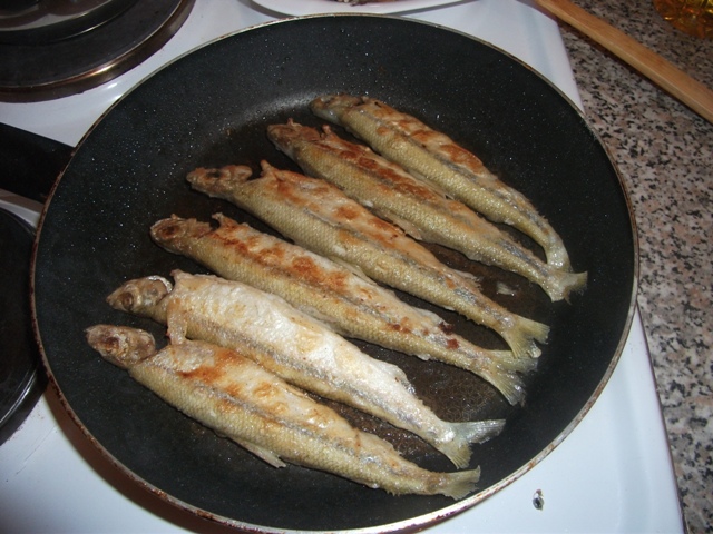 С Мелководной: крупную корюшку - вялить, мелкую - пожарить. В субботу отлично "накосили". Пёрла по всей глубине.
