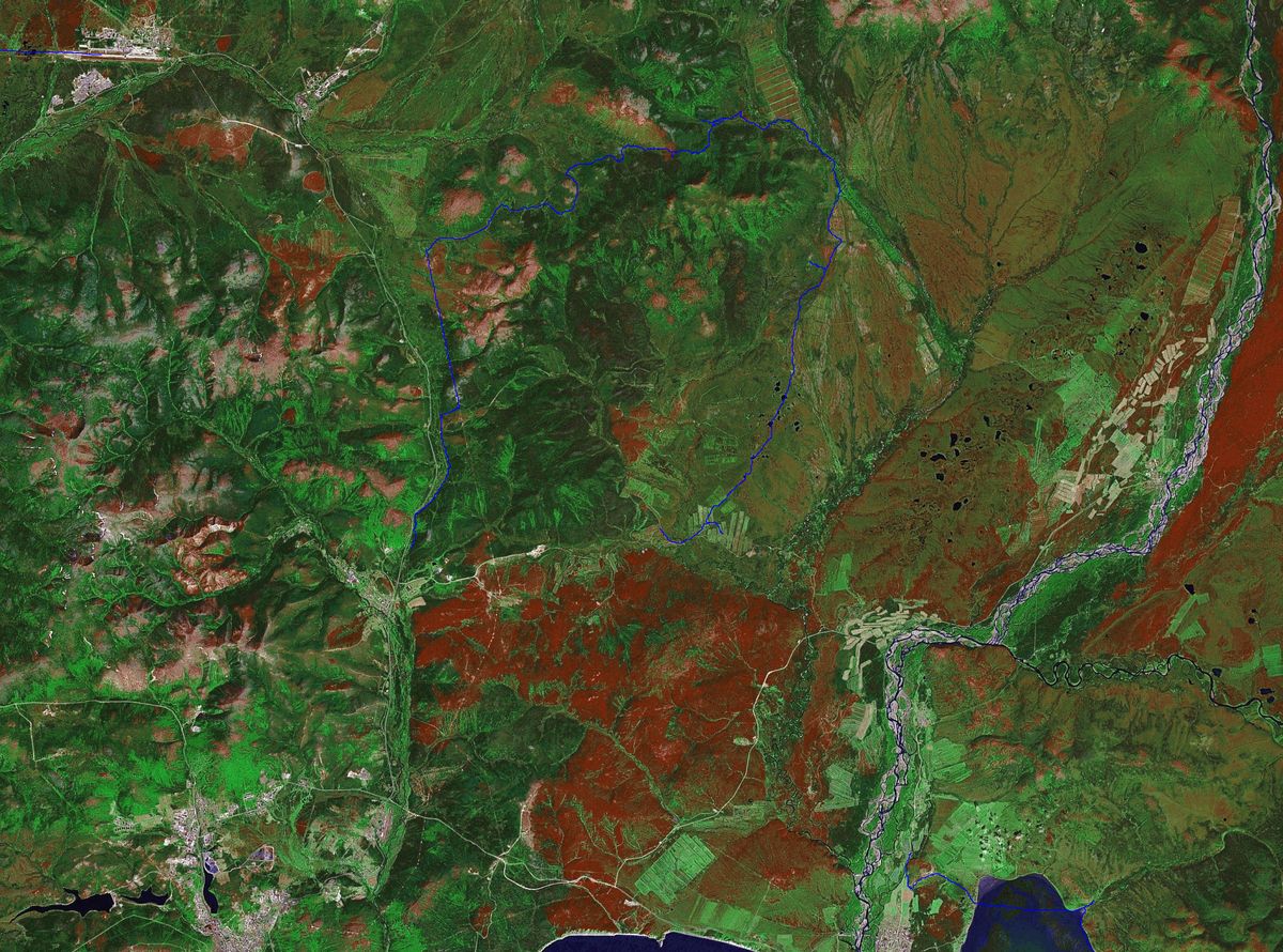 Пробили маршрут ГАИ - руч.Анмандыкан - г.Англия (отм.604,5м) - "Лесная Школа" ну и обратно к дачам, ГАИ. Получилось 55 км с четырьмя пологими перевалами и подъемом на вершину (Если смотреть с "Оленей", то между "Орбитой" и Ольским перевалом видна обособленная куполообразная вершина сложенная из 4 ступеней). Удачно выскочили по южной стороне горы, причем доехали прямо до вершины. Спустившись, объезжали вершину по кругу между 2 и 3 ступенькой (в сторону руч. Ланкучан), делая разведочные "скачки" вверх в местах где это в принципе возможно. Каждый раз упирались в голые камни. Так что, повело, что с 1 раза выехали
